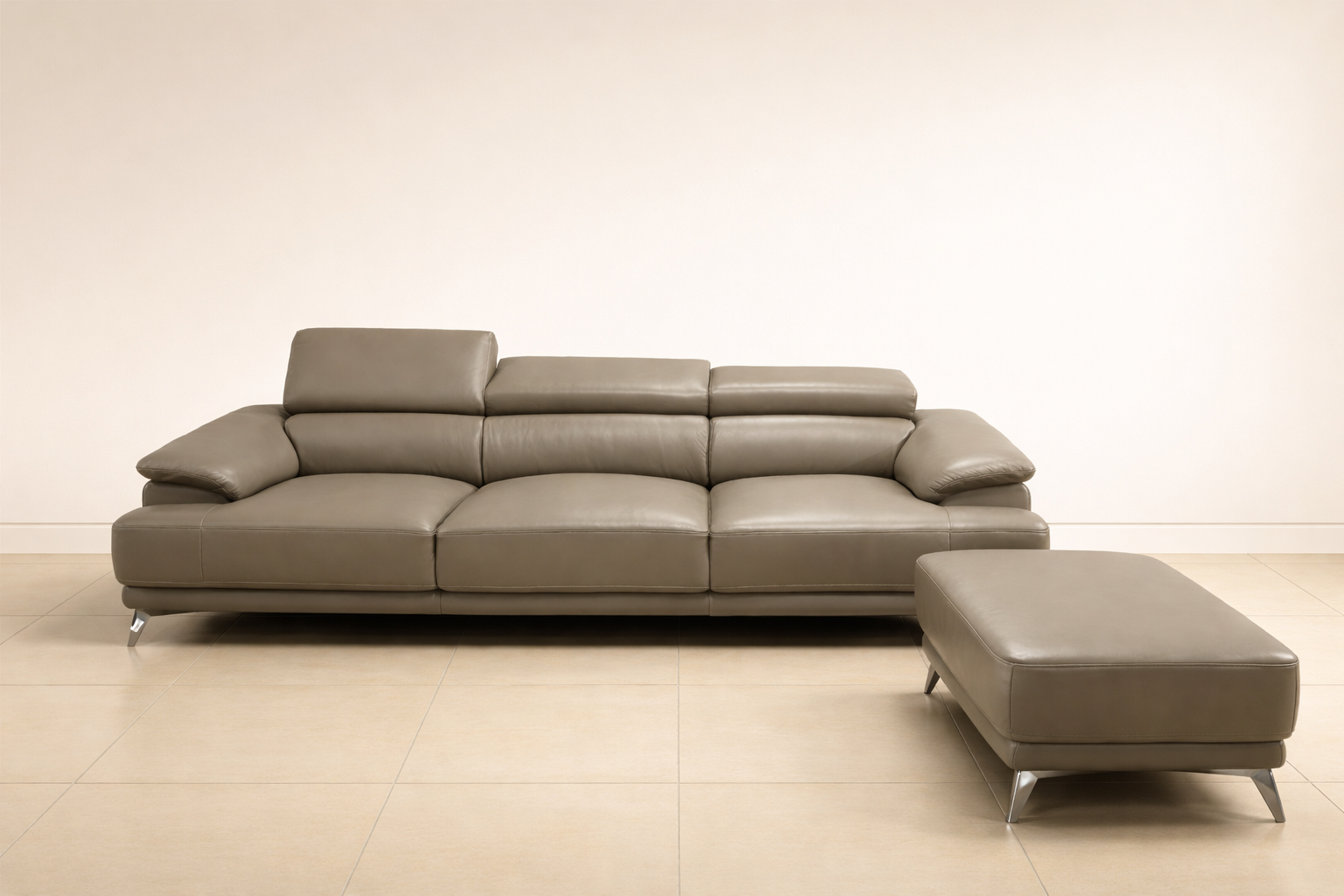 Chất liệu: – 100% da bò thật, Thương hiệu Mastrotto – Italia. Độ dày da từ 1.2 đến 1.4mm. – Chân sắt sơn tĩnh điện. – Đệm ngồi và đệm tựa lưng, tựa đầu sử dụng mút đàn hồi cao cấp, chống xẹp. – Khung gỗ Meranti.