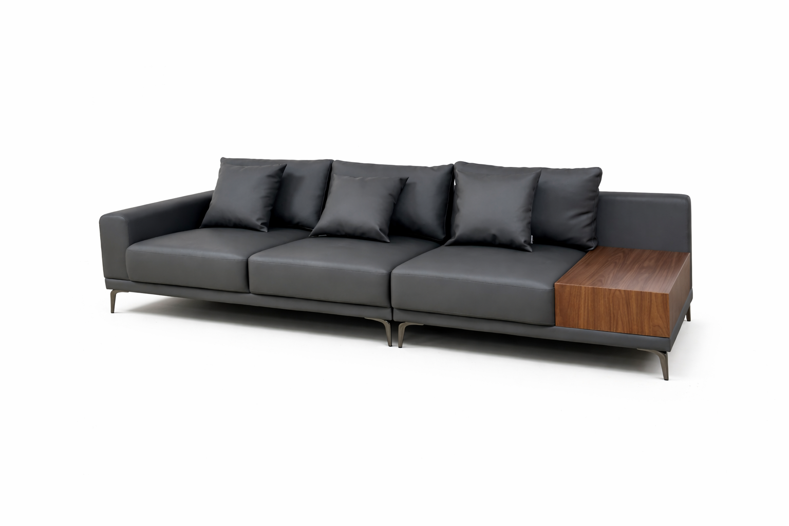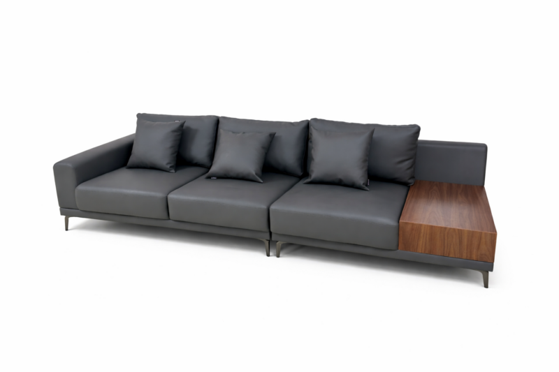 Điểm nổi bật: Điểm nhấn nổi bật là bàn gỗ tích hợp bên hông, vừa tiện lợi vừa tạo sự sang trọng, tinh tế cho không gian. Kiểu dáng tối giản Sofa thiết kế hiện đại với chất liệu da PU cao cấp, bề mặt mềm mại, dễ vệ sinh và bền đẹp theo thời gian.